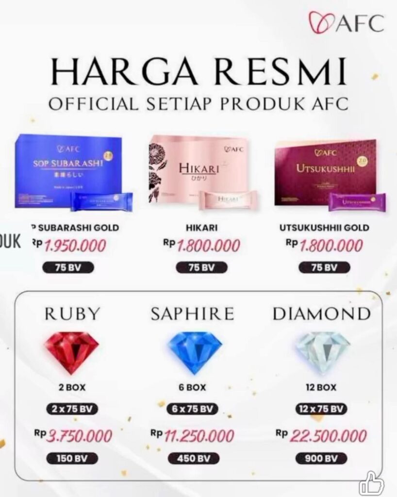 Kami adalah distributor resmi AFC Kendari yang melayani pemesanan produk AFC yaitu SOP Subarashi Gold, Utsukushhii Gold dan Hikari yang asli.